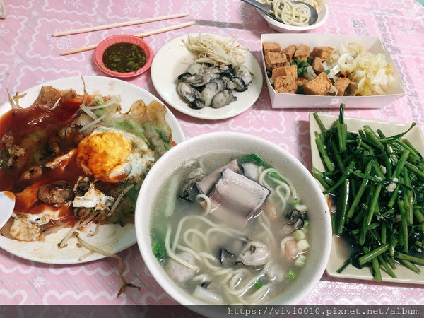滿滿一桌只要NT$280~蚵仔煎跟臭豆腐還有川燙鮮蚵大推!海鮮湯麵用料新鮮大方