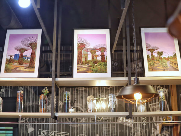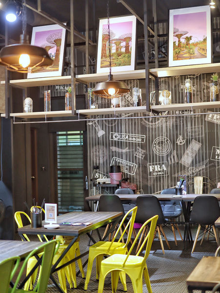 店內裝潢帶有工業風,亮色系的椅子添加活潑,隨處可見新加坡元素的裝飾。