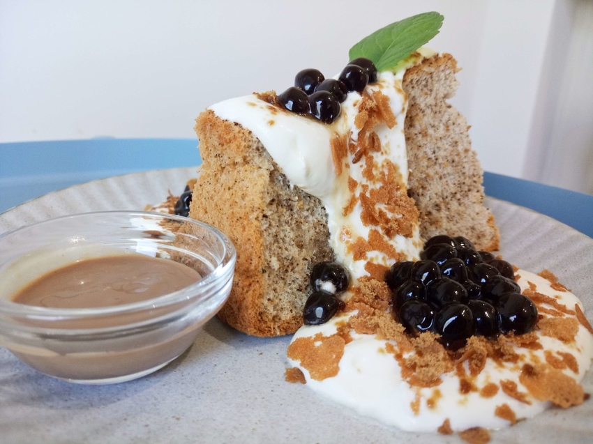珍珠Q軟,吃起來有淡淡的甜味,搭配脆餅讓口感更加豐富,鬆軟、Q彈、爽脆,三種層次一次滿足❤