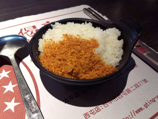 小火鍋冬粉跟飯並存很神奇,重點是還不是一般的白飯,是加了魚鬆的魚鬆飯(雖然菜單上是寫附白飯),米飯煮得剛剛好,不是軟爛的白飯。