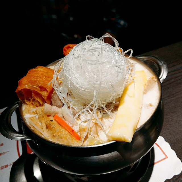 滿到爆炸的起士奶豬肉鍋,說真的一開始我還真不知道要從何下手,感覺一翻動,鍋子裡的料都會掉滿桌,要超級小心翼翼地翻動鍋裡的食材。