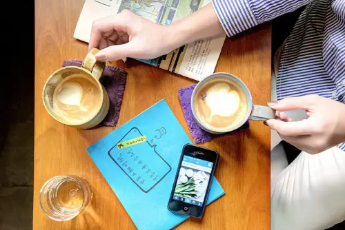 木紋六角桌面與旅徒咖啡類似