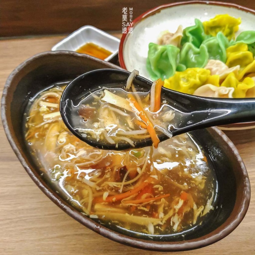 用料相當有誠意,有干絲、筍絲、紅蘿蔔絲與木耳,起鍋前打蛋花入鍋勾芡熄火,微酸不辣。