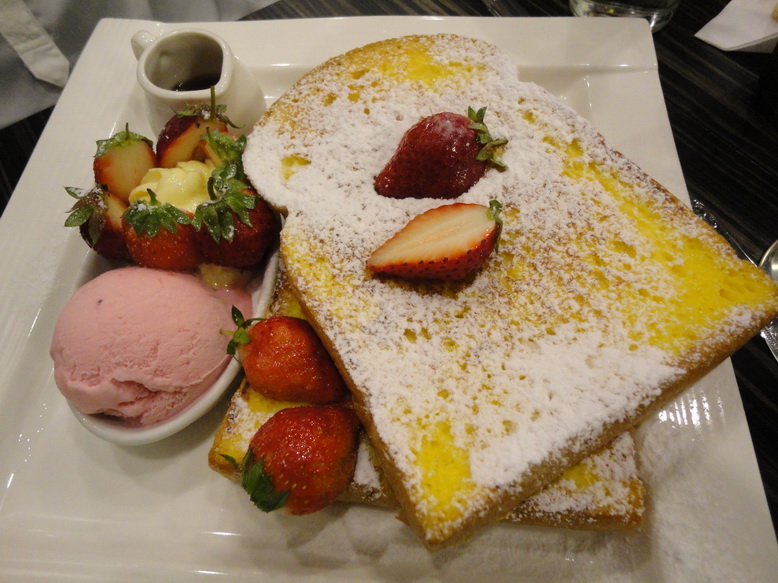 結實的草莓顆粒及草莓明治冰淇淋的「草莓遊樂園布丁吐司」。草莓加上冰淇淋就已經太犯規啦!這應該是女生都會愛的餐點。
