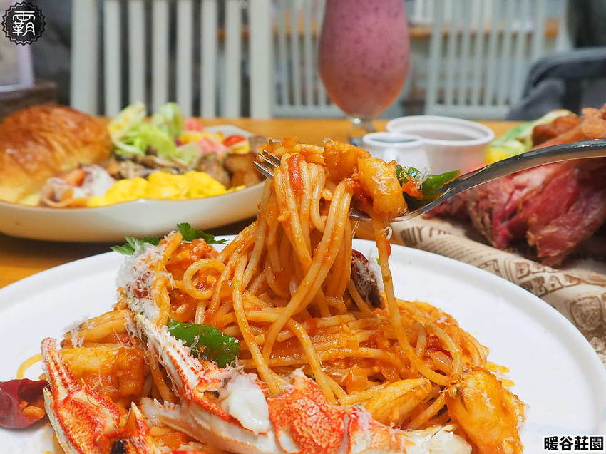「暖谷莊園」不僅在氣氛上很用心,餐點的擺盤與口味也是很有水準,而且包含了早午餐、義大利麵、排餐、甜點等餐點,甚麼時段造訪都有餐可以點。胃口不大的女生點個煙燻鮭魚可頌搭杯飲料差不多。喜歡吃辣的捧油,香辣蟹肉義大利麵一定要試試看,多人聚餐點一套肉食控大拼盤準沒錯,加上每個角落都很適合拍照,選這邊聚會大家一定會吃得過癮、玩得開心!