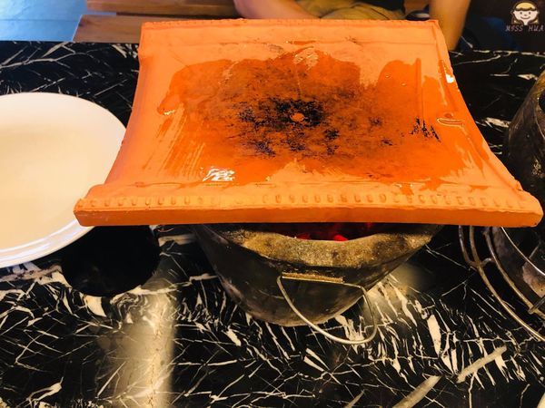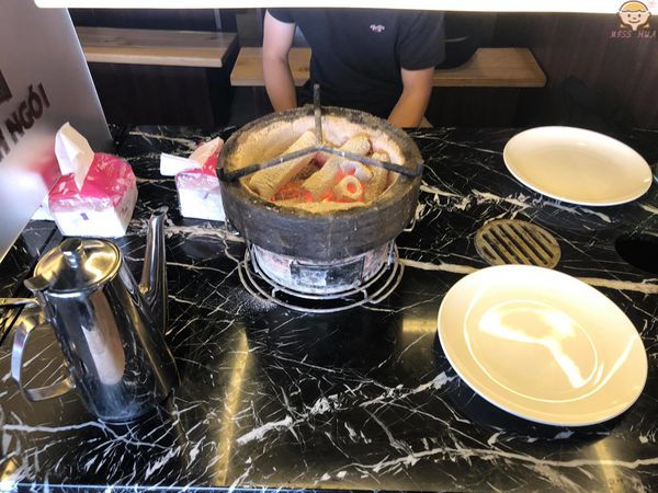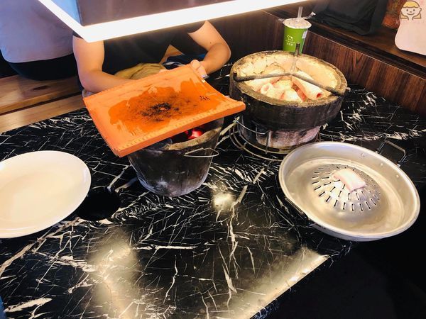 炭火是放桌上的,使用木炭,而不是放在桌子下,如果有帶小孩的話要小心點