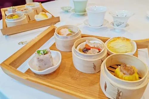 由服務員推著點心餐車~穿梭在座位間~熱鬧開心的場合