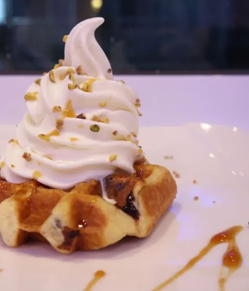 他們家的鬆餅都是客人來點的時候現場烤的哦,保證新鮮的喔!