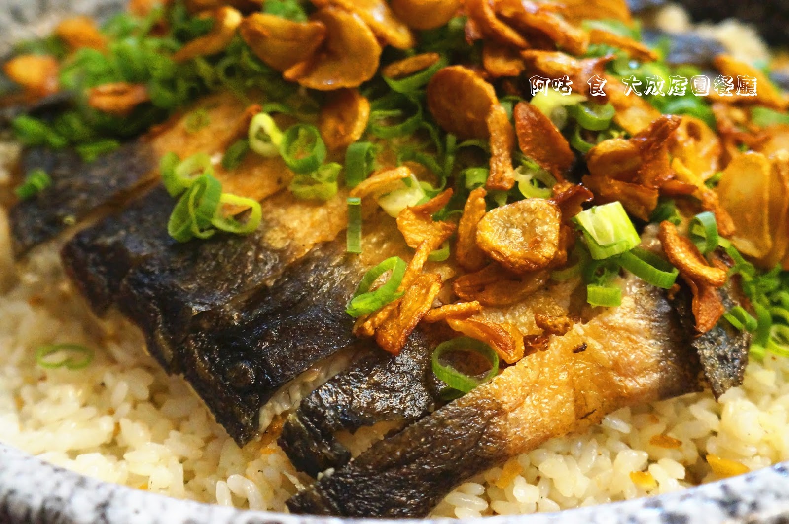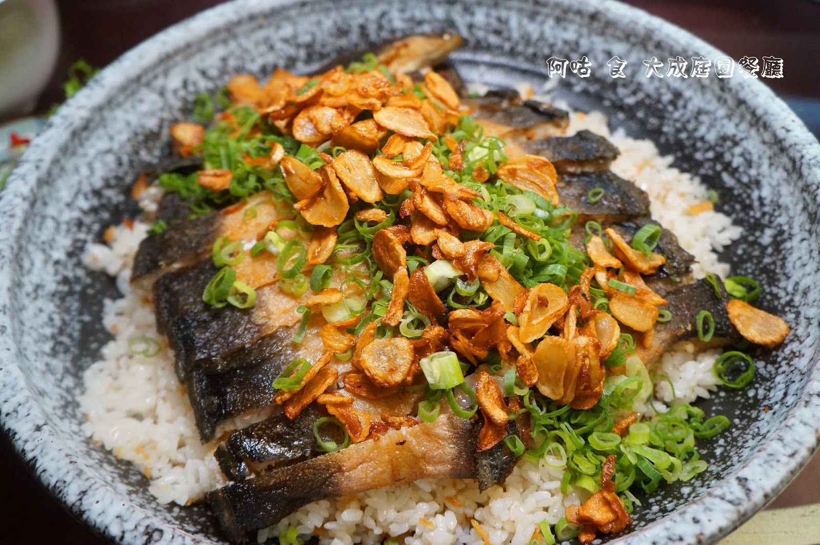 內容主要為米飯、煎烤鰻魚肉與煎蒜片,再佐以蔥末提味;不僅飯量十足,鰻魚肉與蒜片也給得相當大方。