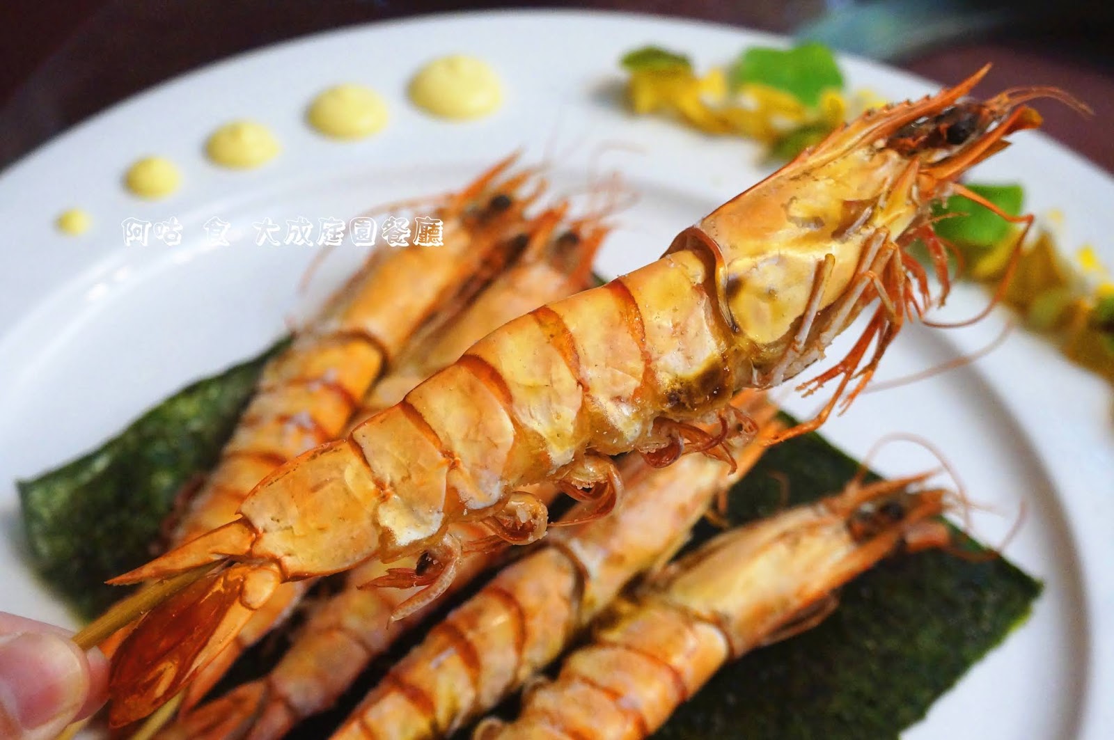 比手掌更長且肥美的大草蝦,蝦肉口感細緻而 Q彈,外層塗抹的鹽巴更顯其甘甜鮮腴的原味,很快地就被一掃而光了。