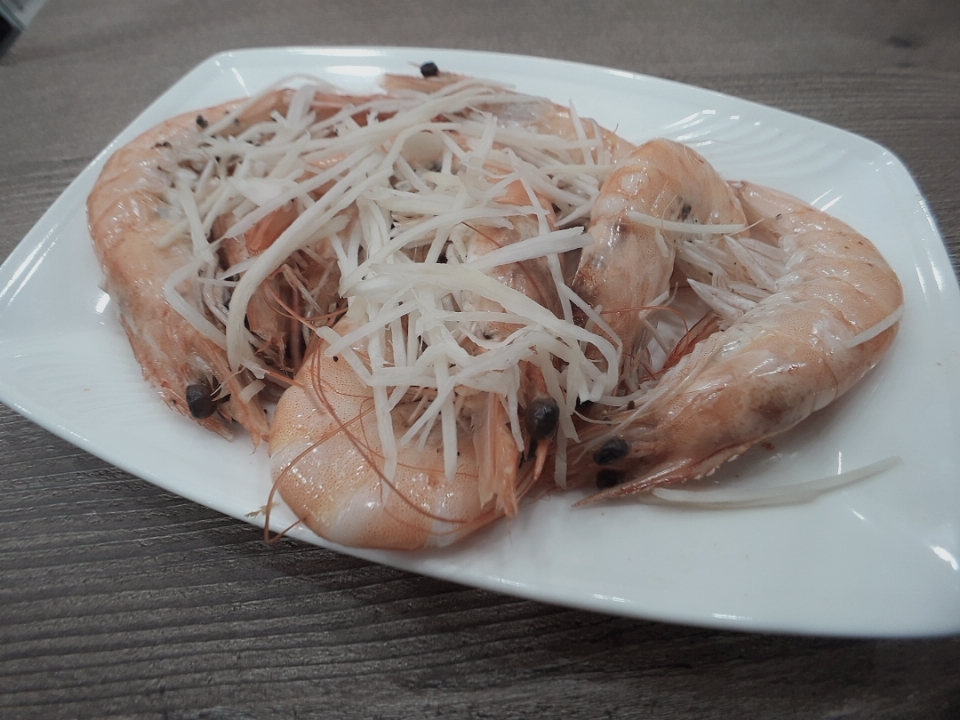 鹽蒸蝦170元,雖然屎蛋爸蝦子撥不停,還是要點鹽蒸蝦,因為屎蛋一家就是愛吃海鮮啊啊啊!保證大隻的鹽蒸蝦,加入一點點鹽提味蒸煮,鮮甜好吃!