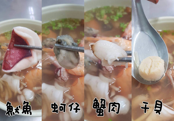 還有魷魚、蚵仔、蟹肉及一顆干貝