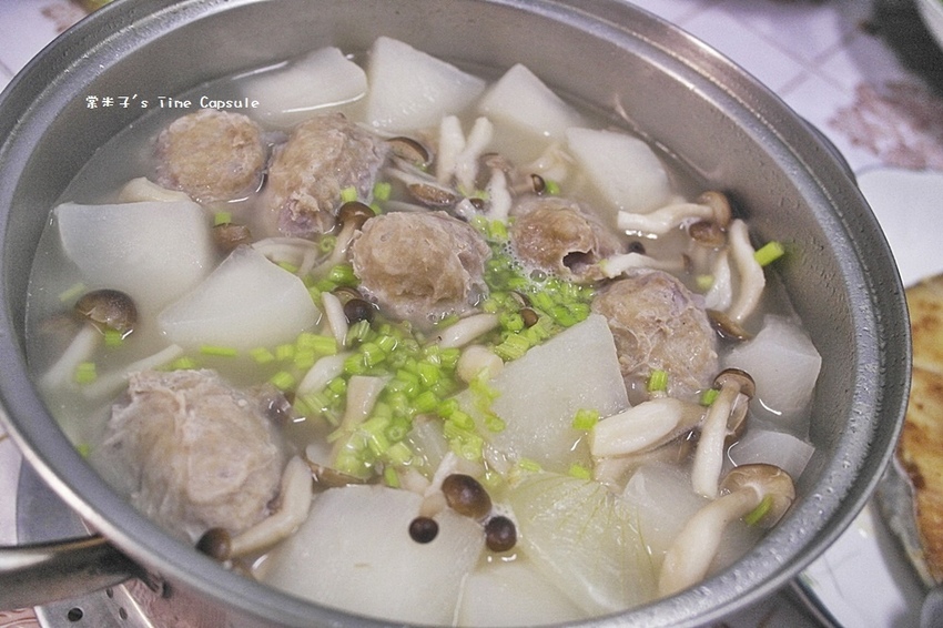 在蘿蔔排骨湯中加入芋頭貢丸非常適合,