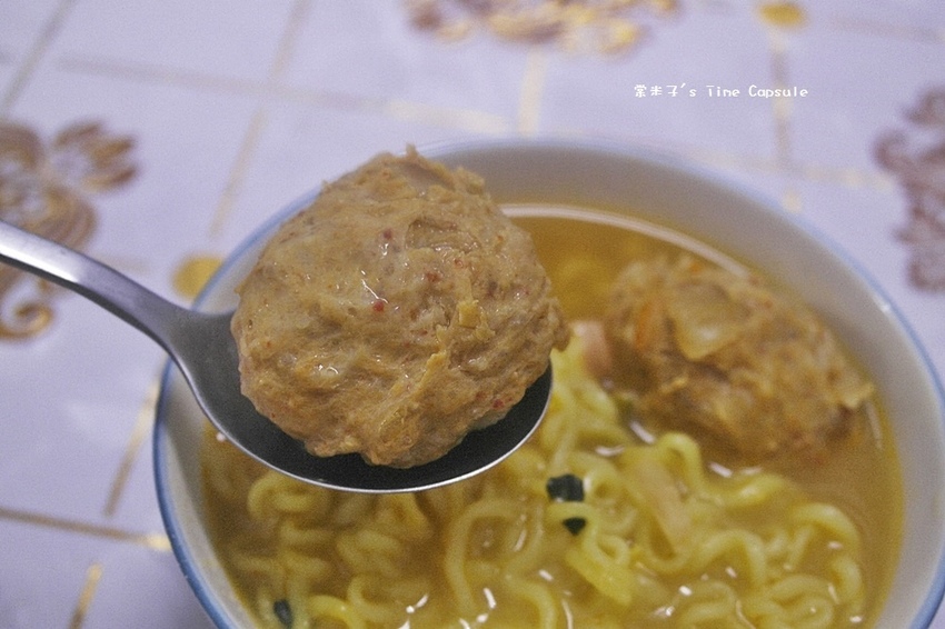 香噴噴的泡麵和泡菜貢丸很搭唷!
