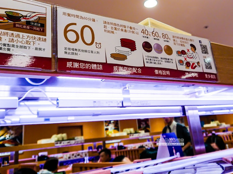 手扶梯往後一轉就看到台灣壽司郎新北中和環球店,下午四點還是有人在排隊等著進去吃壽司