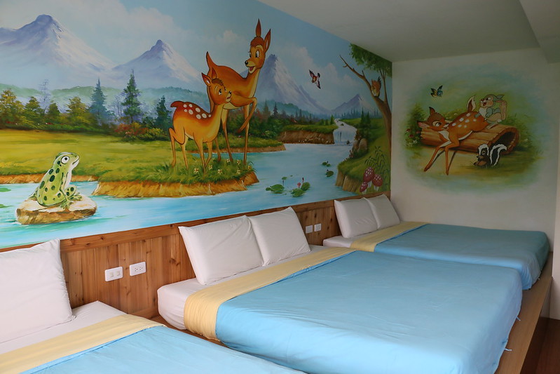 每間房型都有各自主題,牆上是可愛的卡通彩繪!