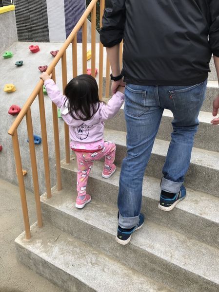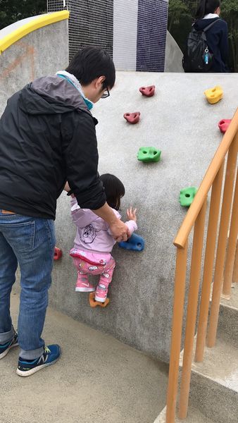 還有滑石後面還有讓小朋友攀岩爬行的地方