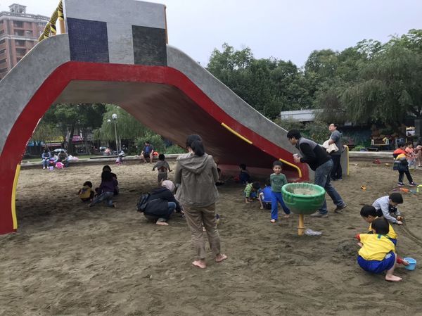 下面一大片沙坑可以讓小朋友們盡情的玩沙