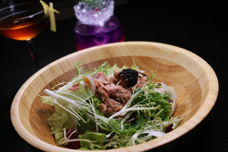 搭配鹹香的鮪魚及魚子醬,吃之前均勻攪拌