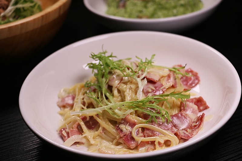 加入份量不少的培根,每口都是奶香與肉香的完美結合