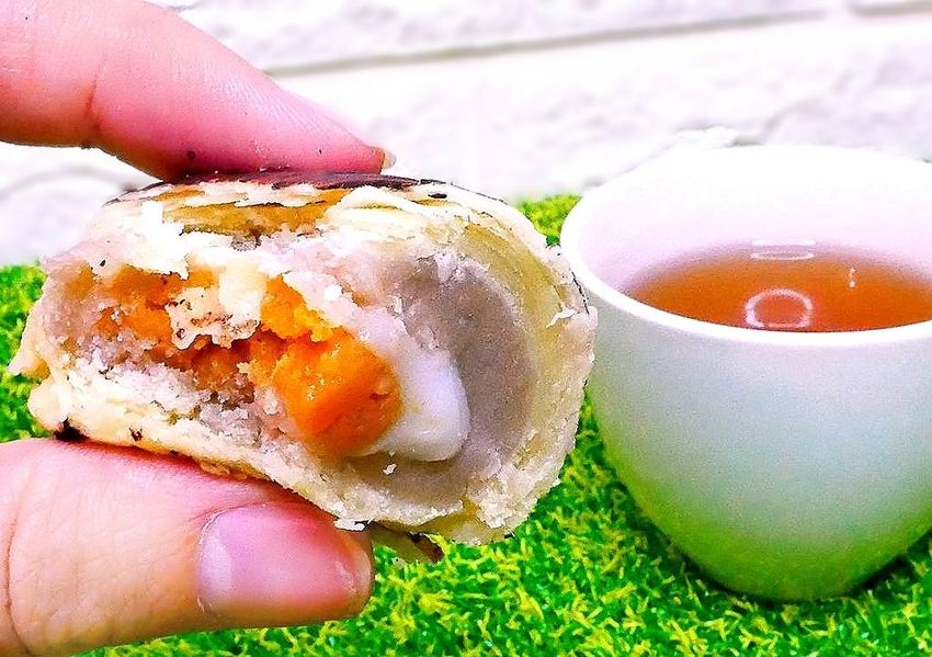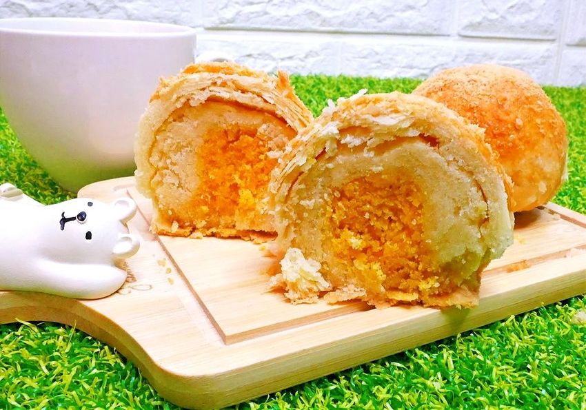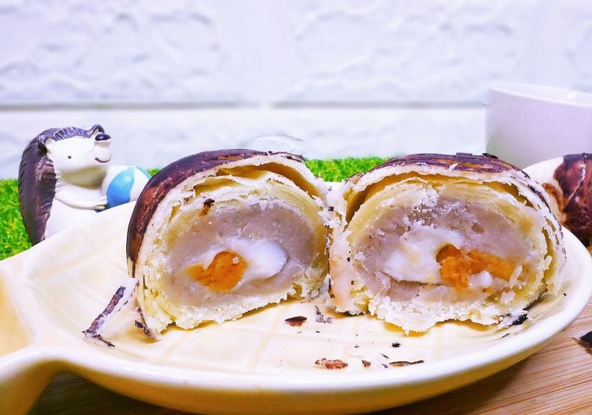 芋泥的口感紮實又綿密.而白麻糬更是Q彈.奶皇餡香醇可口.鹹蛋黃的加入更是結合了鹹甜風味!