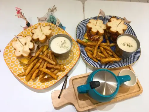 這裡可以自取水、衛生紙、濕紙巾,另外因為和室座位要脫鞋,店內還有提供木屐可以走來走去XDD但不能穿出去喔