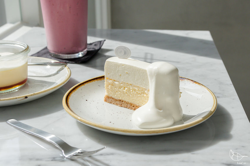 雖然看起來像是平淡無奇的乳酪蛋糕,不過其發想其實是來自店主在南美洲的那段旅程中,嚐過的當地傳統甜點「Très leches 三種牛奶」,這款傳統甜點是將蛋糕體浸泡在煉乳、濃縮奶和牛奶裡,三種乳製品混和卻又保有各自的風味,濕潤綿密。