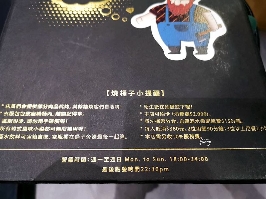 每一桌都是採汽油桶製成的烤架,多了桌板可以同時放置許多餐點。而沒真的讓客人站著吃,而是放上韓式餐廳會有中空圓板凳,座墊打開後,裡頭可以放包包及衣物。由天花板而降的吸油煙管,真的可以吸走大部份的油煙呢!