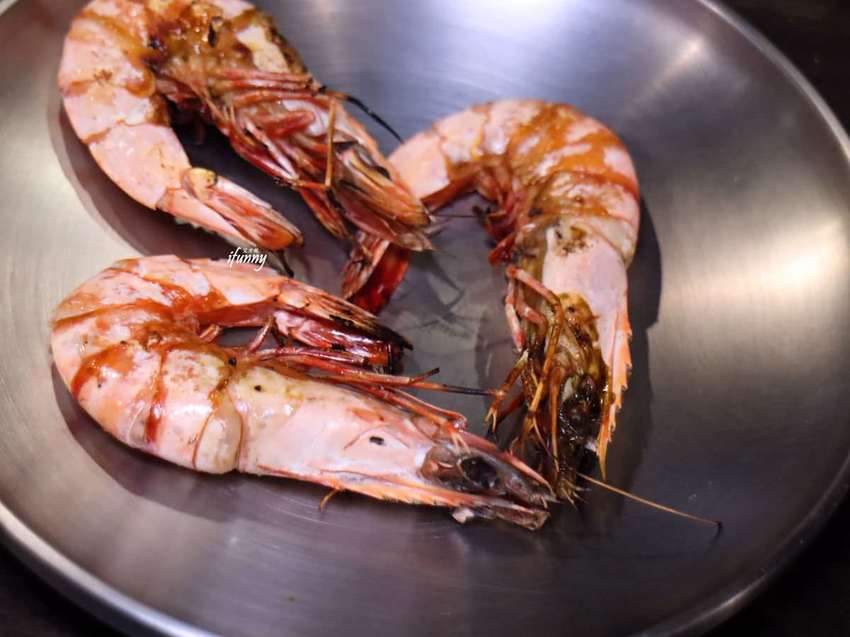 三人套餐中的澳洲深海大花蝦、頂級黃金松阪豬、經典韓式豬五花。