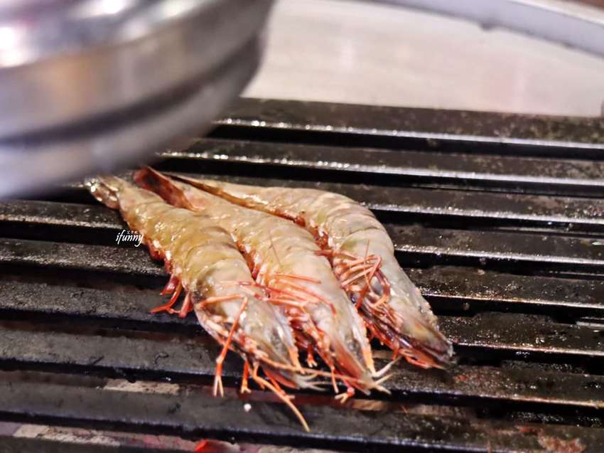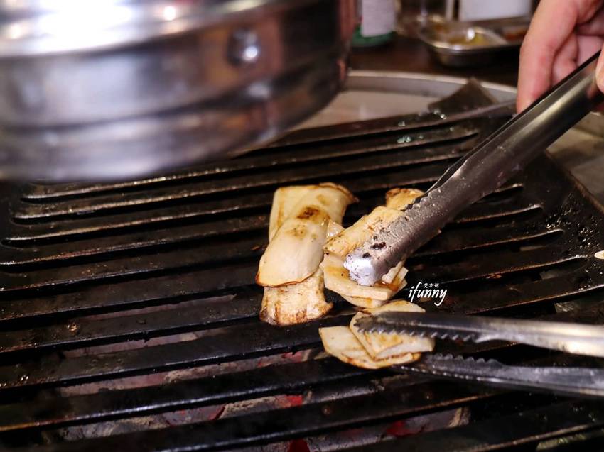 加上了鑄鐵烤盤,看著炭火燒得火熱,肚子也跟著飢腸轆轆了!