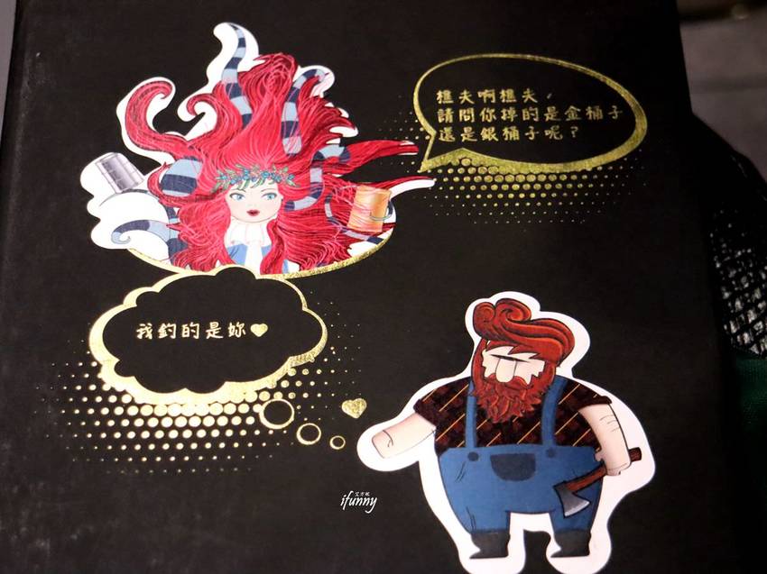 原來店內的壁畫是改編伊索寓言裡的<金斧頭及銀斧頭>,人物是Q版的湖中女神及樵夫,但這樵夫也太會撩妹了吧!連女神都可以撩XDD金斧頭及銀斧頭>