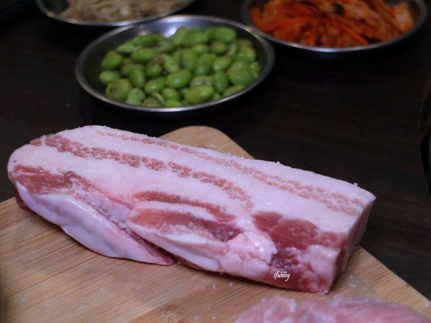 吃韓式烤肉,怎麼能不吃豬五花呢?這條厚實的豬五花,看起來太過癮了!