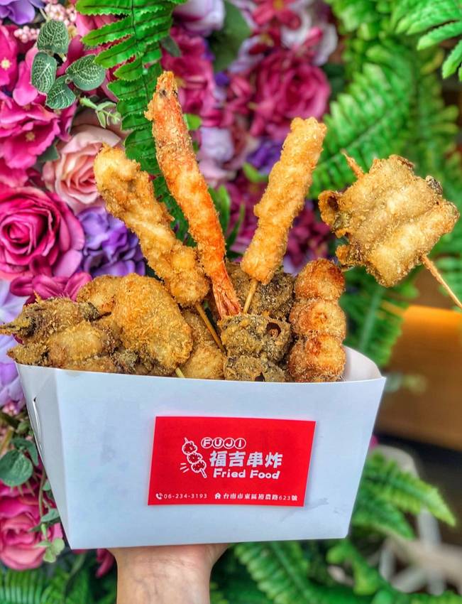 台南首家平價串炸專賣店 ! 想吃日式正統串炸不用飛大阪,在台南裕農路上新開一家『福吉串炸』嚴選新鮮食材當天現串現炸,炸至薄酥香脆每一口都是最鮮美的滋味,再沾上三種獨門沾醬讓人愛不釋手啊,以每支15元~40元平價路線打入市場,像廣島牡蠣、挪威鮭魚、澎湖小卷 只要銅板價就能吃到,CP值爆表,即日起至6/30前來店消費不限金額打卡就送雞胸肉‼️這麼好康的活動超佛心啊,很適合當下午零嘴或宵夜,這家小白真心推薦便宜又好吃。