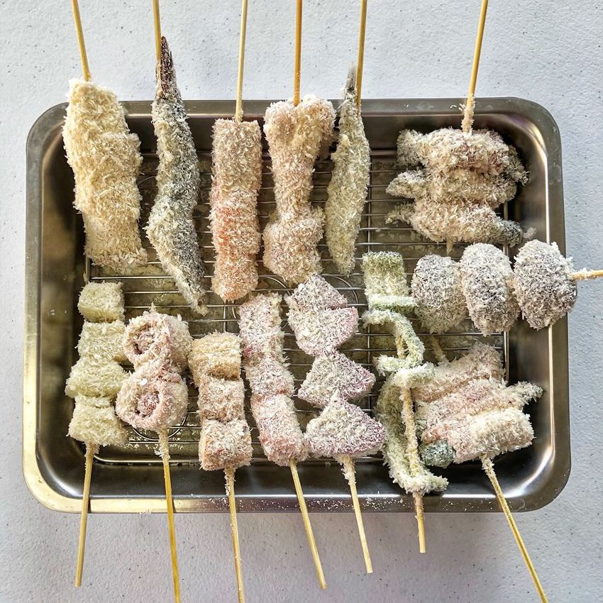 通常炸物放冷外皮會軟掉導致油膩,但日式串炸有裹上特製的粉漿與麵衣並不會油膩而且放冷還會更酥喔。