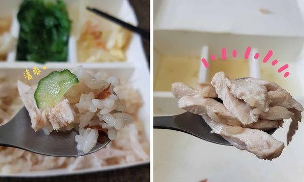 一口飯+雞肉塊+小黃瓜一起吃,非常清爽又開胃