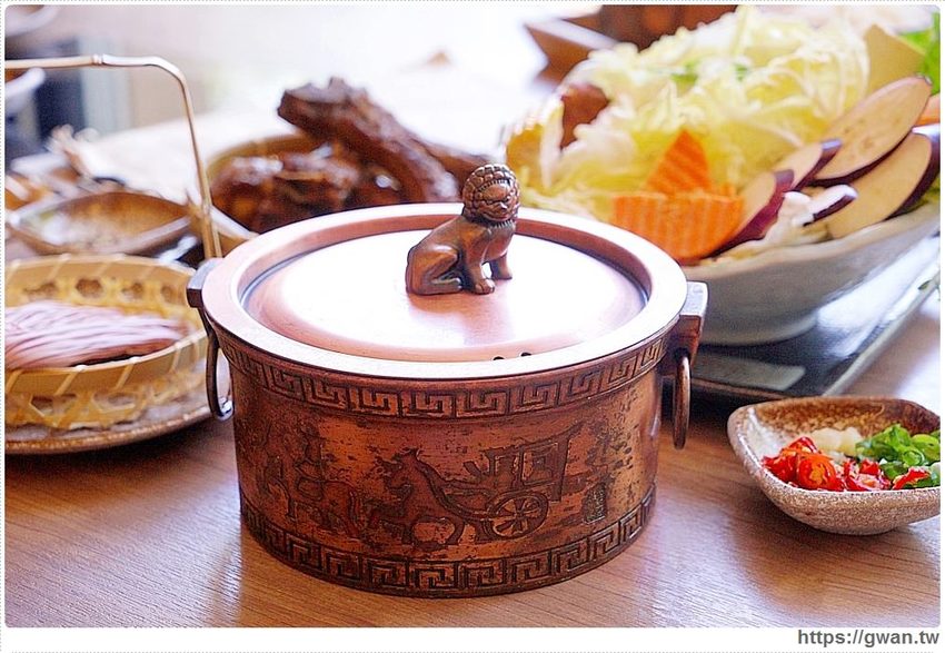德記火鍋的鍋具使用充滿中國風的古銅鍋,看起來很有質感,鍋蓋上頭還有一隻祥瑞福獸,古典氛圍跟特意營造出的用餐環境也好搭