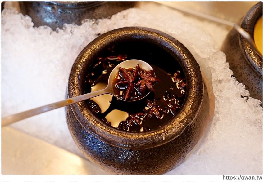 比較特別的是醬油裡撈起來居然有八角,果然是連小細節都要跟中藥息息相關 XDD 其他像沙茶、辣油、腐乳都是自己炒的,感覺很用心
