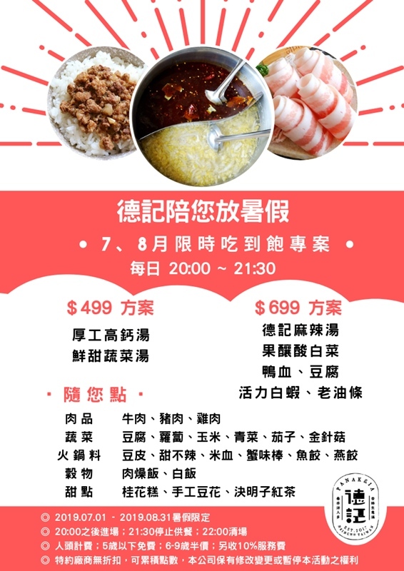 德記中藥火鍋 | 吃到飽菜單(暑假限定)