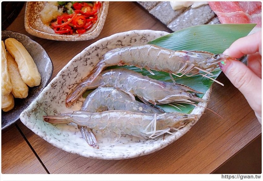 海鮮類有活力白蝦,鬚鬚修剪掉了比較不扎手,肉質吃起來鮮甜緊實,吃不夠都可以再加點