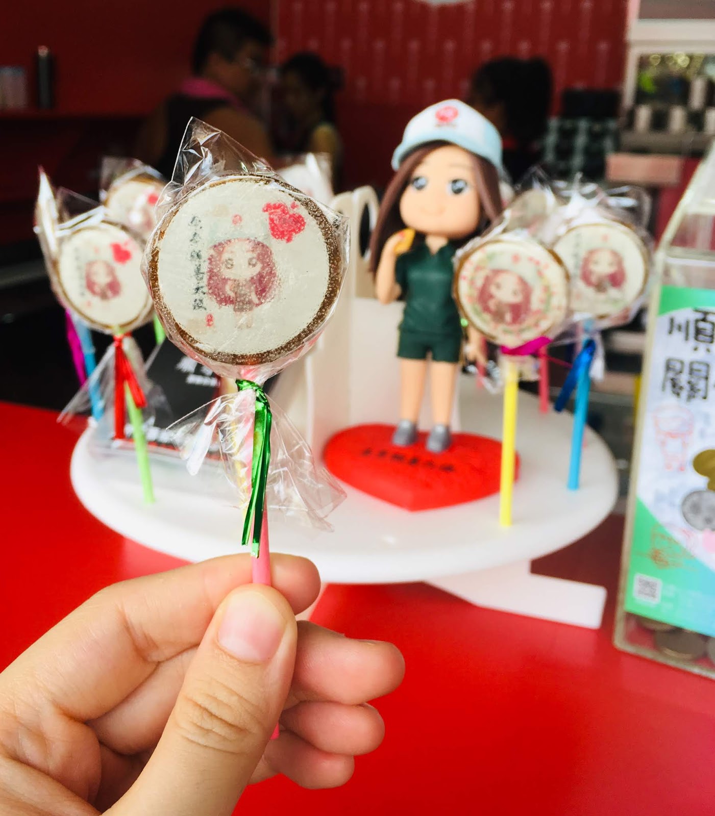 店內可以看到以美麗的老闆娘奈奈為主題的公仔,連滿額贈的黑糖棒棒糖上也有老闆娘的Q版卡通圖案,讓人印象深刻,滿額300元贈一支,也可一支20元加價購。