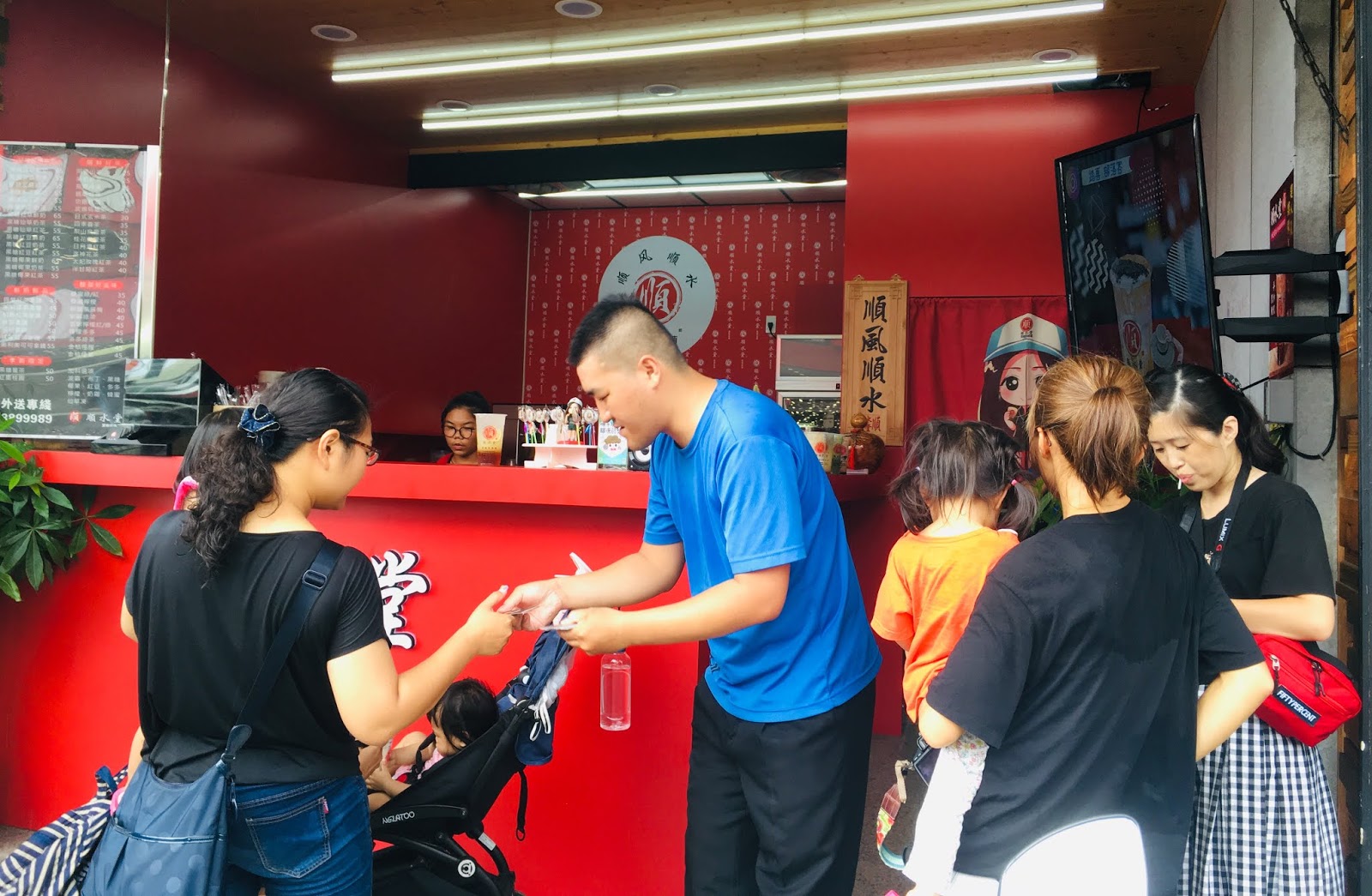 我們一群媽媽在店門口排隊點餐,親切的老闆親自出來發名片,和我們詳細介紹各式飲品,也很不好意思地說明飲料製作需要一點時間,要請我們稍等一下。