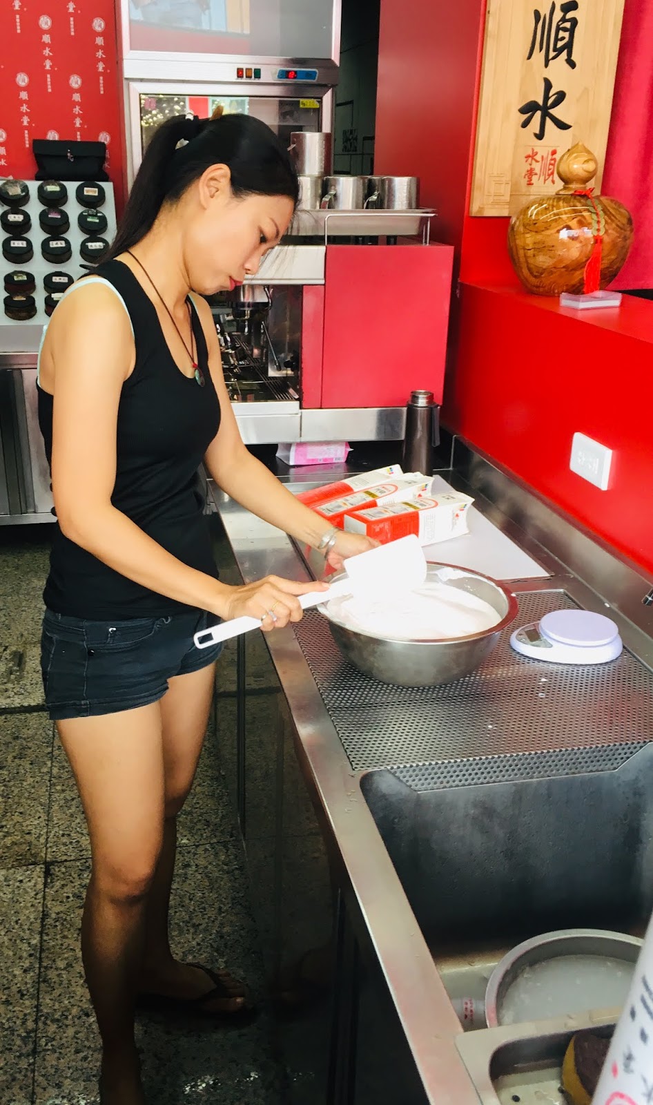 老闆說,全台飲料店幾乎都有「黑糖波霸鮮奶」,「順水堂」能在當中異軍突起,就是憑著他們獨一無二的秘方。由於對自家口味和技巧很有信心,老闆也不怕我們知道製作過程,很大方公開給我們拍攝,讓媽媽們受寵若驚,認真地卯起來猛拍。