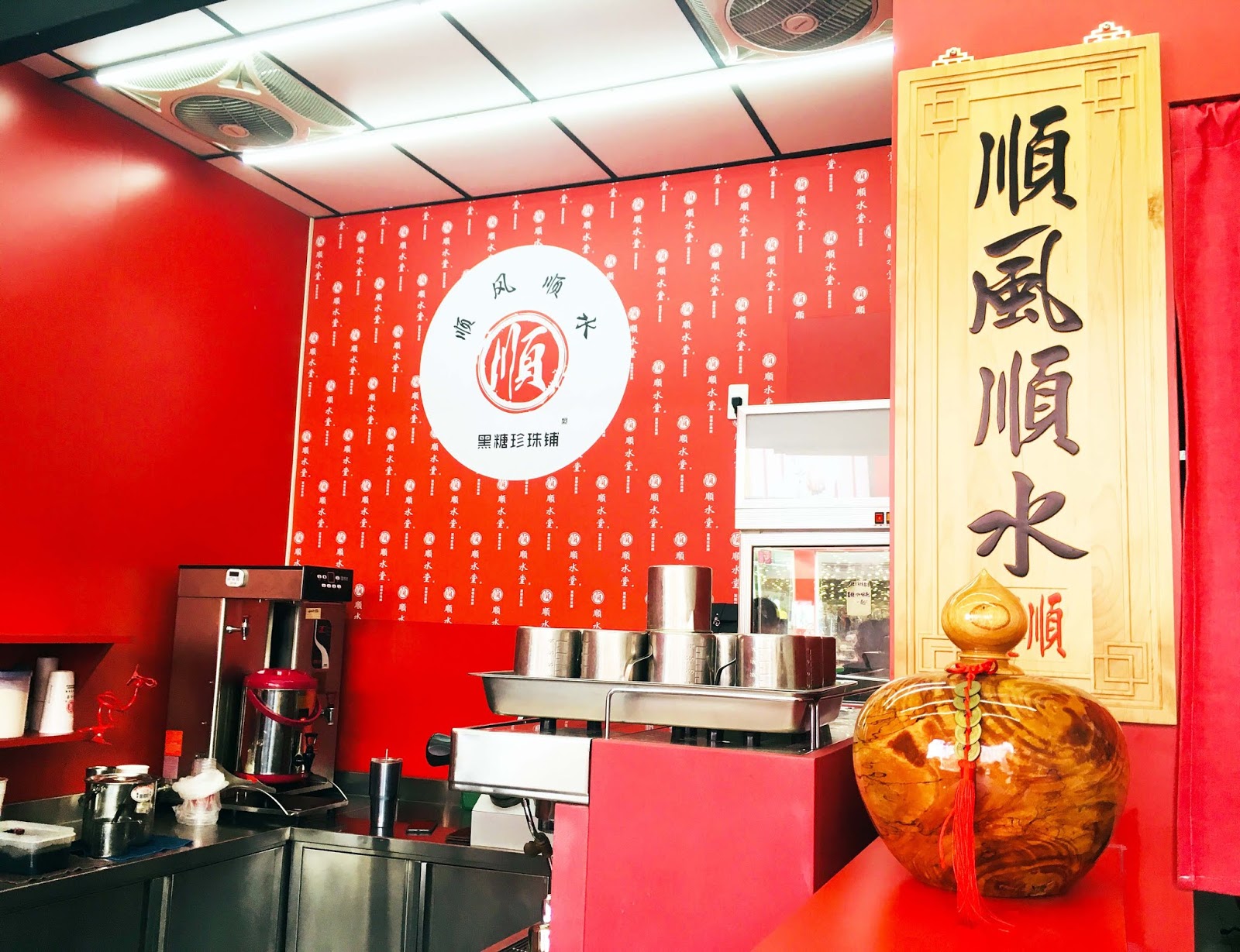 「順水堂」店面外觀以黑色襯托出大紅色的喜氣,純粹而搶眼的色彩,讓人經過很難不注意到。