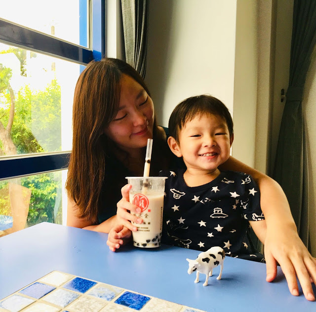 一端出「冬瓜鮮奶加波霸」,小福寶看到有沒喝過的新口味很興奮,一找到我啜飲的空檔連忙喝一大口,香醇回甘的美味讓他露出滿意的笑容。精心熬煮的香甜「冬瓜茶」調和濃郁「鮮奶」,入喉時有清甜的冬瓜香尾韻,加上手炒黑糖珍珠的咬勁,不會過甜又有十足口感,令人意猶未盡。