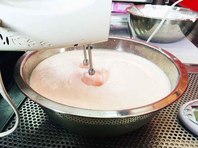 老闆娘細心調製綿密滑順的玫瑰奶霜,倒至飲品頂部形成醇厚的玫瑰奶蓋,淡淡的粉紅色好美。
