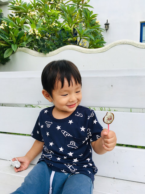 店家以手炒黑糖自製的棒棒糖,有微微炙燒的黑糖焦香,天然質樸的古早味很迷人,讓小福寶怎麼吃都吃不膩。