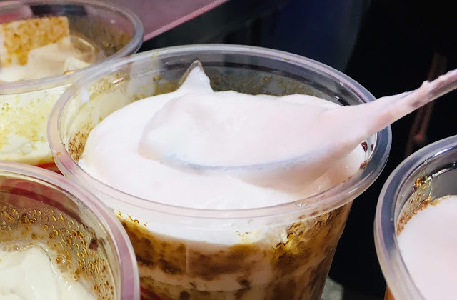 喝第一口,發現「黑糖波霸鮮奶」口感完全和預期的黑糖飲品不一樣!滿口都是濃郁的芝麻香和花生香,仔細品味,還有一絲優雅的玫瑰香氣,相較之下,珍珠的黑糖味反而淡一些,卻香Q不搶味,喝起來更像是濃醇滑順的芝麻花生波霸鮮奶,是很滿足又飽足的幸福滋味。好多媽媽朋友在旅程的後來幾天持續回購,就是衝著這杯。