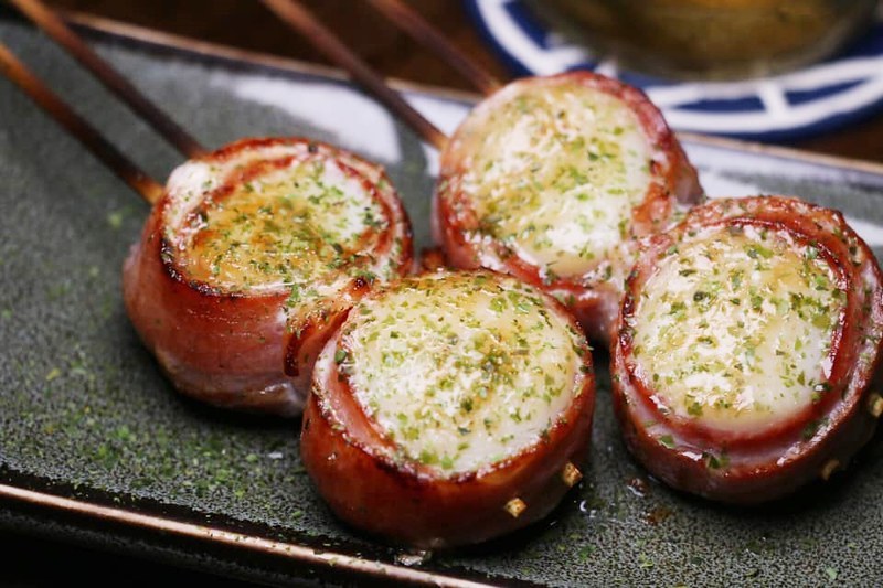 推薦鹽烤無骨牛小排、培根干貝捲、明太子雞肉串!