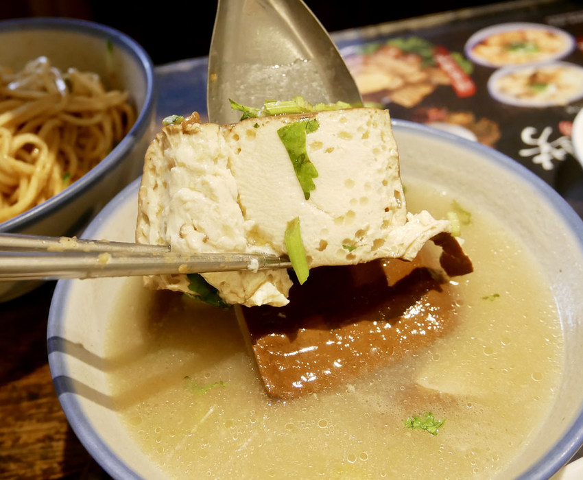 大腸豆腐湯($65)- 多了大腸陪襯豆腐感覺更好吃欸,湯是爽口的豚骨,這種需要花上好幾小時熬製的功夫還是花點錢直接來吃比較實在,自己煮真的太費工