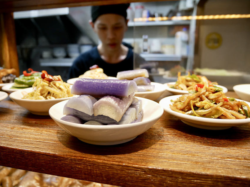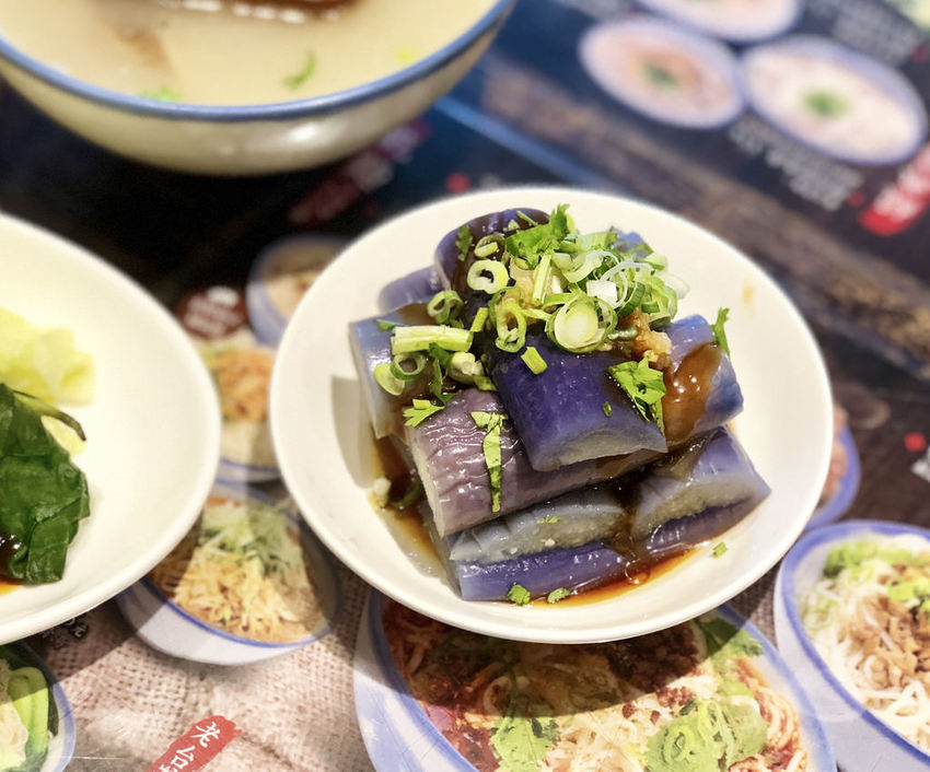 小菜區滿多樣的,可以請店員幫你拿,有些小菜上桌前還要化個妝,像是這碟茄子,淋上了特製的酸甜醬汁才端上桌
